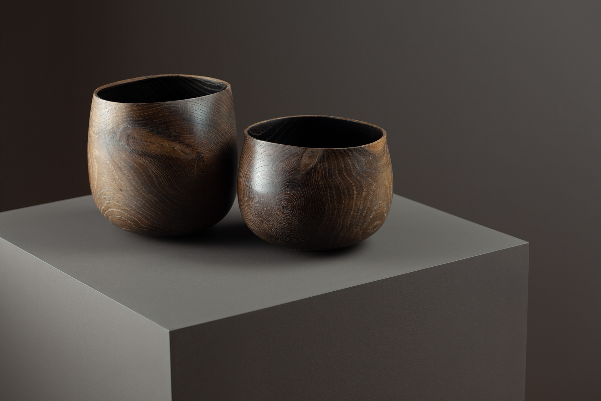 Grands bols en chêne oxydés patiné au brou de noix huilé et ciré Ø x vendu