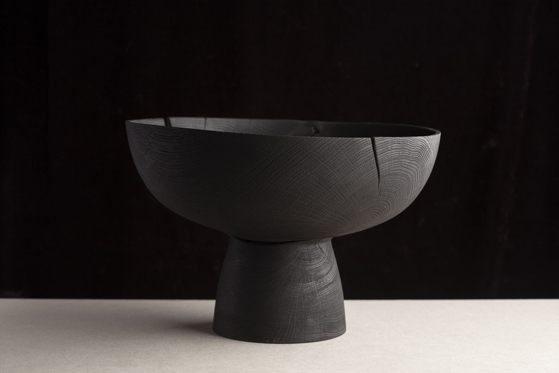 Grand calice en chêne carbonisé et huilé Ø40cm / H 35cm vendu