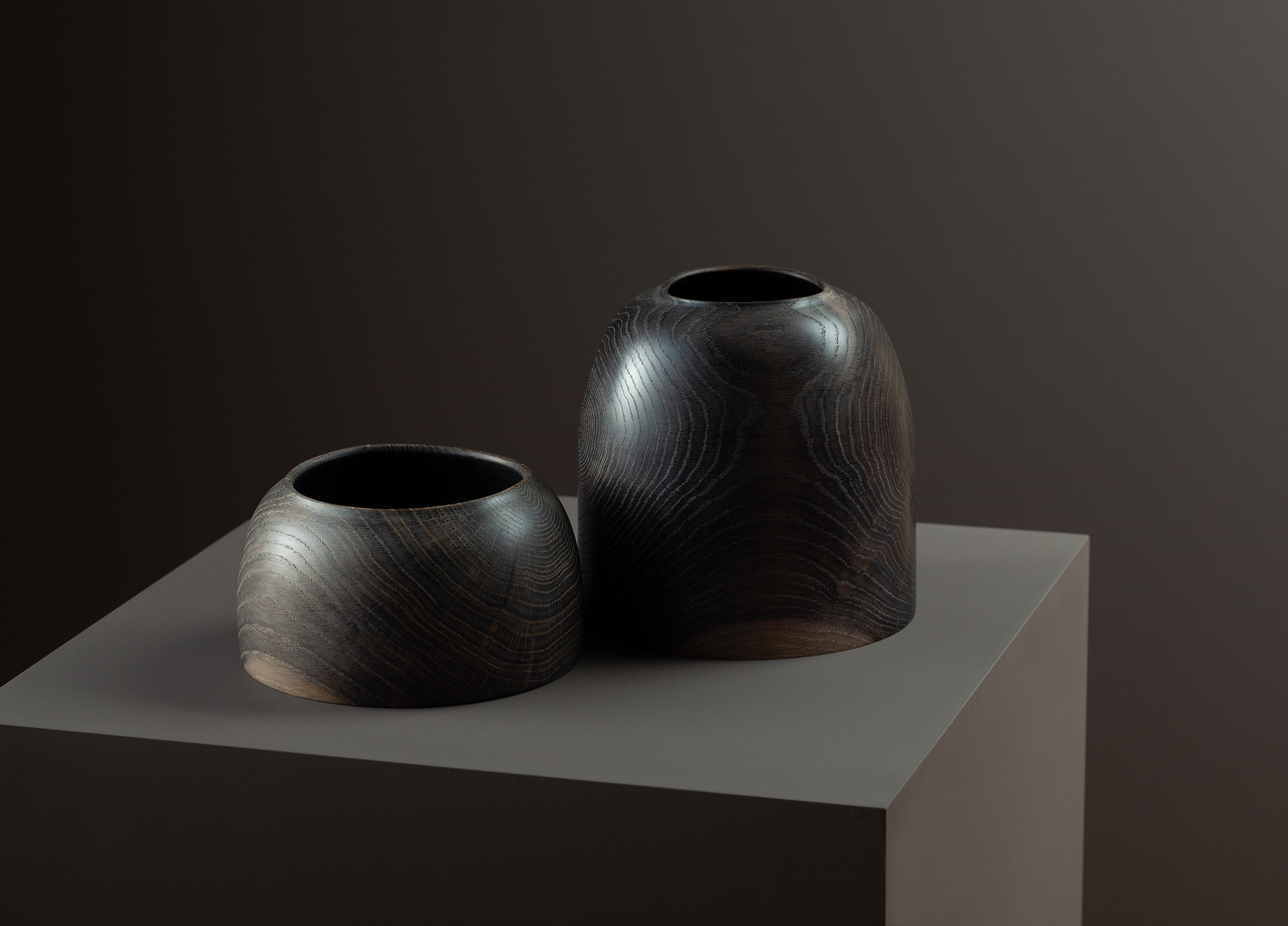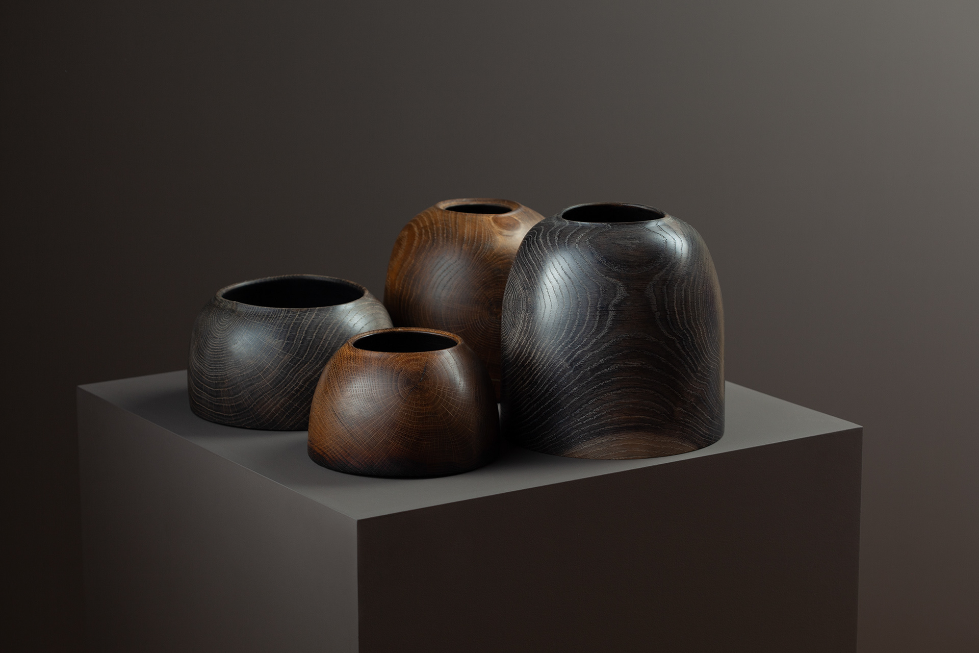Bols bulbes en chêne patinés, partiellement brulés ou oxydés Ø à Ø